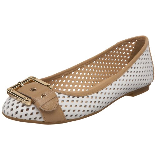 Buy Now! French Sole FS/NY Women's Waffle Ballet Flat,White/Camel,5.5 M US